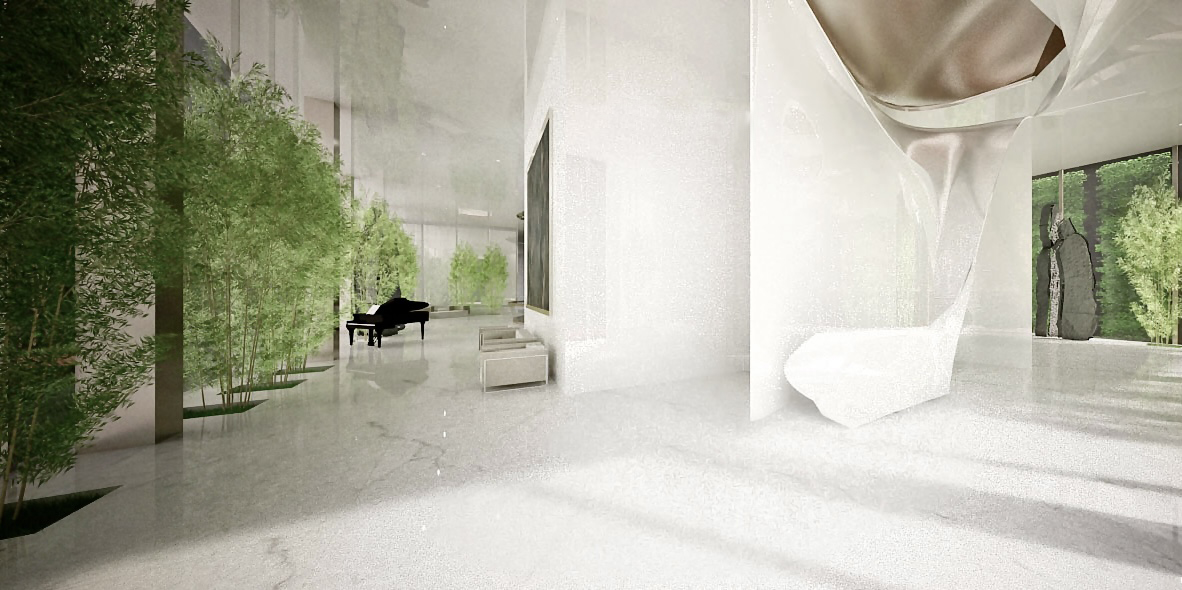 The interior design of this 83-unit residential complex in northern Tehran was commissioned to Saye Architects. The project encompassed the complete interior design of the main lobby, spa and wellness facilities, gym, reception and banquet halls, swimming pool, lounge areas, residential units of various typologies, and the rooftop garden. The design approach focused on creating a harmonious dialogue between functionality and elegance, where spatial proportions, material selection, and lighting design work together to define a refined and contemporary atmosphere. Each space was conceived as part of an integrated whole, ensuring that the sense of comfort, quality, and identity is consistently reflected throughout the complex.