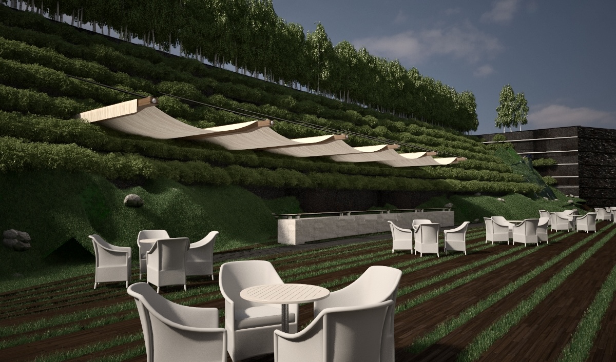 The landscape design of the Vanak project, spanning approximately 2,000 square meters, was developed by Saye Architects as part of the project’s comprehensive architectural vision. Located on a site with a pronounced natural slope, the design faced the challenge of integrating the topography into the overall composition without introducing a dominant retaining wall that would disrupt visual continuity and the sense of openness.