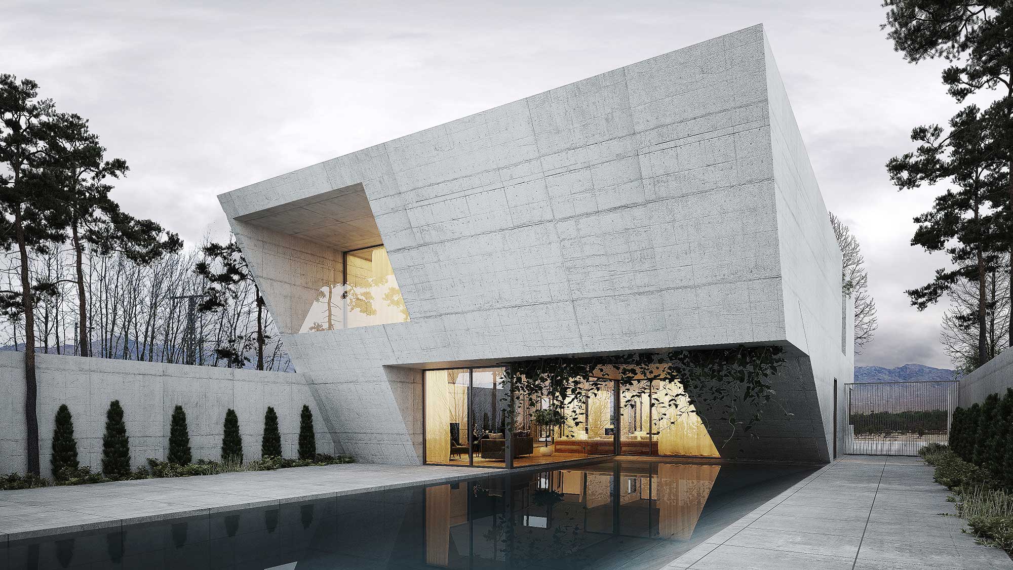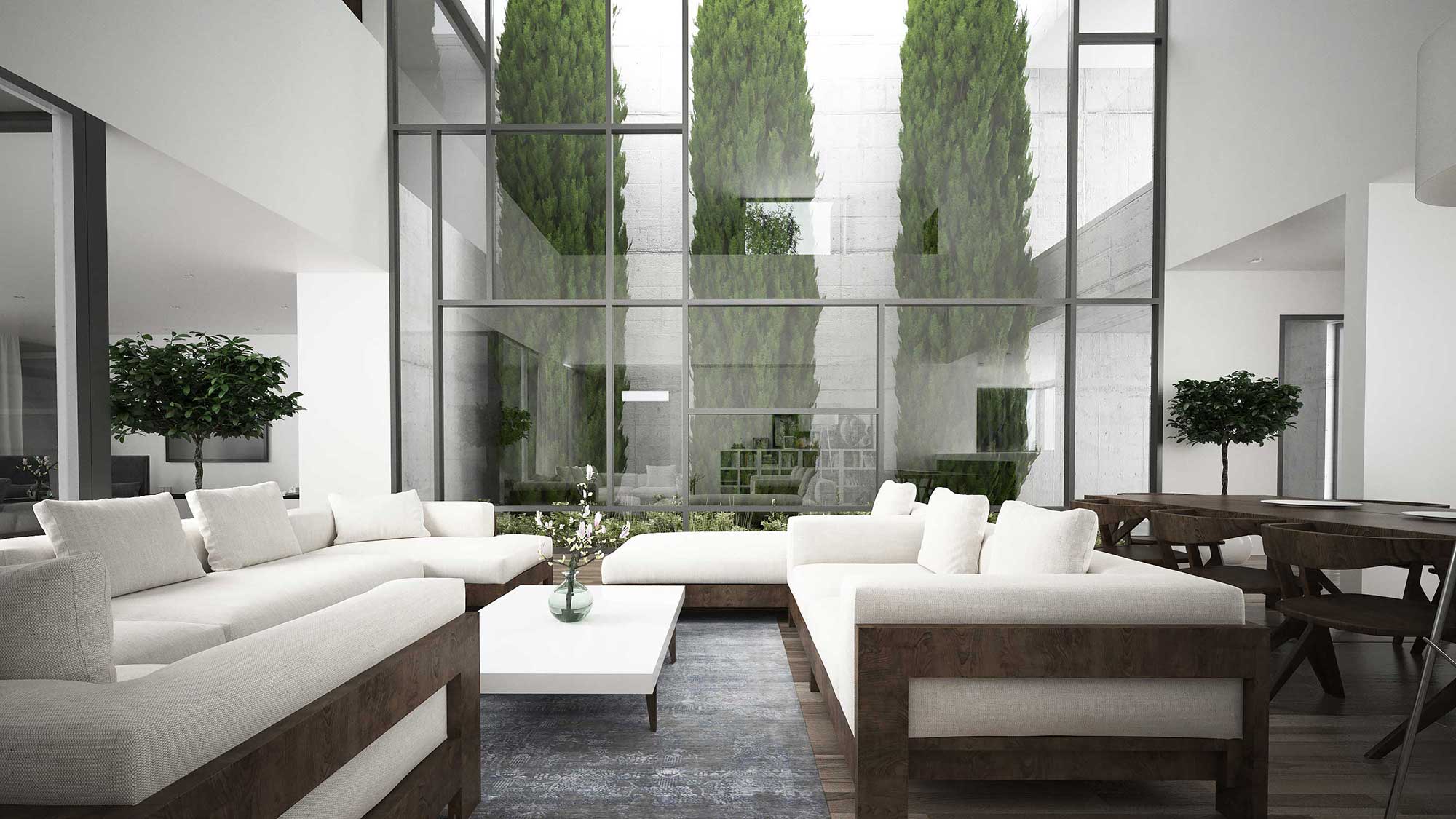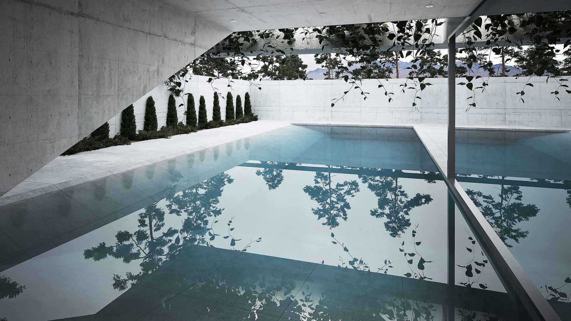 The ground floor accommodates the kitchen, reception halls, and poolside auxiliary spaces, while the upper floor houses four bedroom suites, each designed as an independent unit. Overall, the villa combines modern design principles with lessons drawn from historical architecture, creating a residence that is both contemporary and deeply rooted in local tradition.