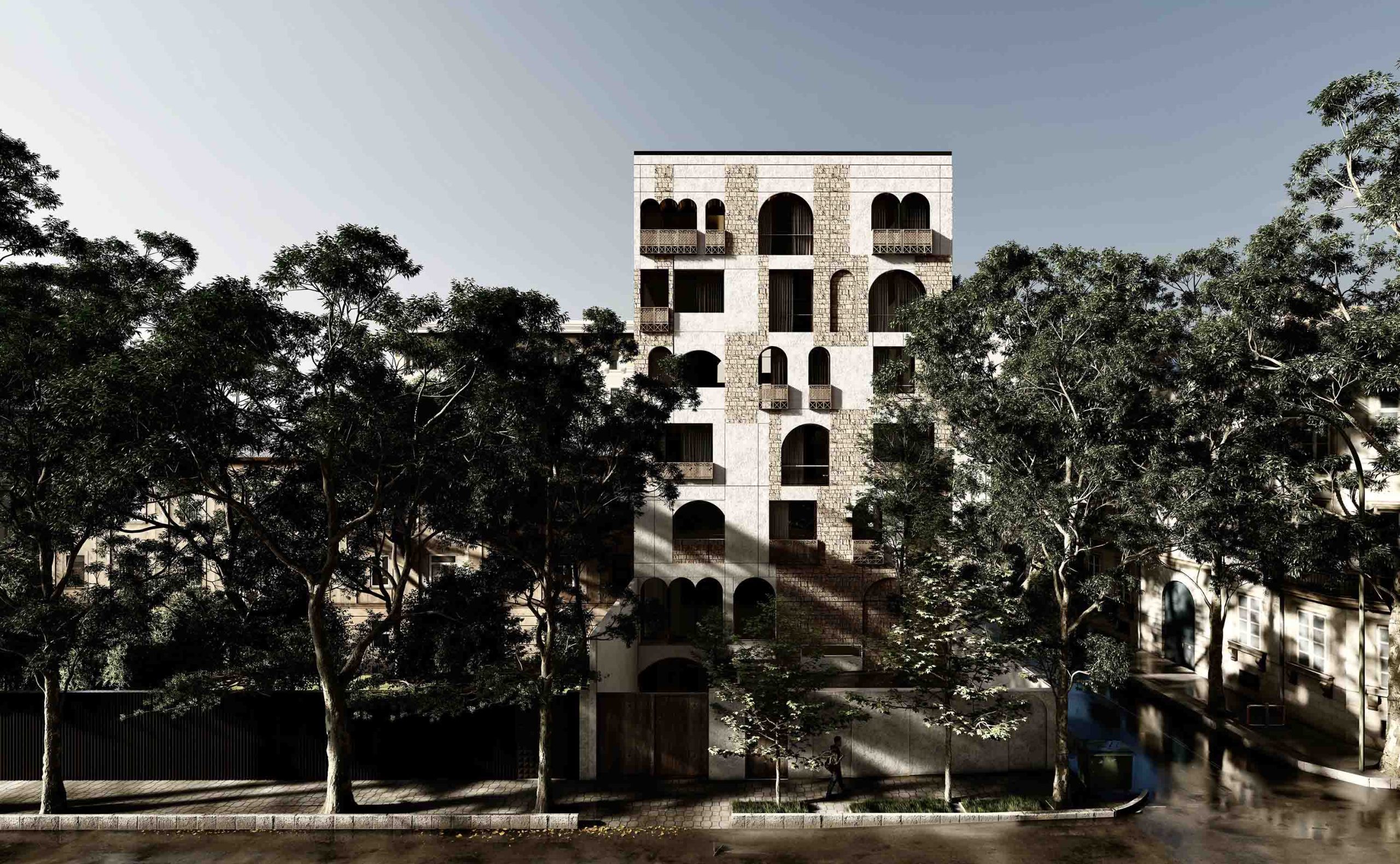 O conceito arquitetônico inspira-se na arquitetura persa antiga, estudando suas proporções, harmonia espacial e autenticidade material. Através dessa exploração, o design reinterpreta referências históricas de maneira contemporânea e refinada.